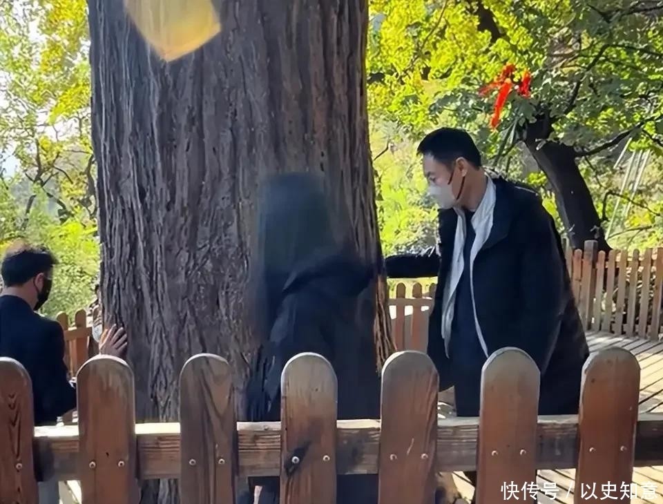 26. 照片中,辛柏青身穿黑色外套,身形明显清瘦许多,好友李乃文全程陪伴在他与女儿身旁。他缓缓绕行于祈福用的老银杏树周围,神情凝重,眼中写满了难以释怀的思念。