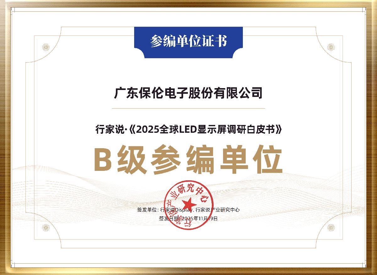 “行家极光奖”是行家说开创的光电与新能源产业榜单,以产业纵深角度、专业严谨地评选出获奖单位及产品,被誉为产业的“风向标”,为全面反映行业生态,特设“非上市公司十强榜单”,发掘并表彰未上市企业中的营收佼佼者。itc保伦股份凭借在LED显示屏领域雄厚的企业实力、良好的市场口碑、卓越品质及产品创新能力再度蝉联“LED显示屏非上市公司十强”!